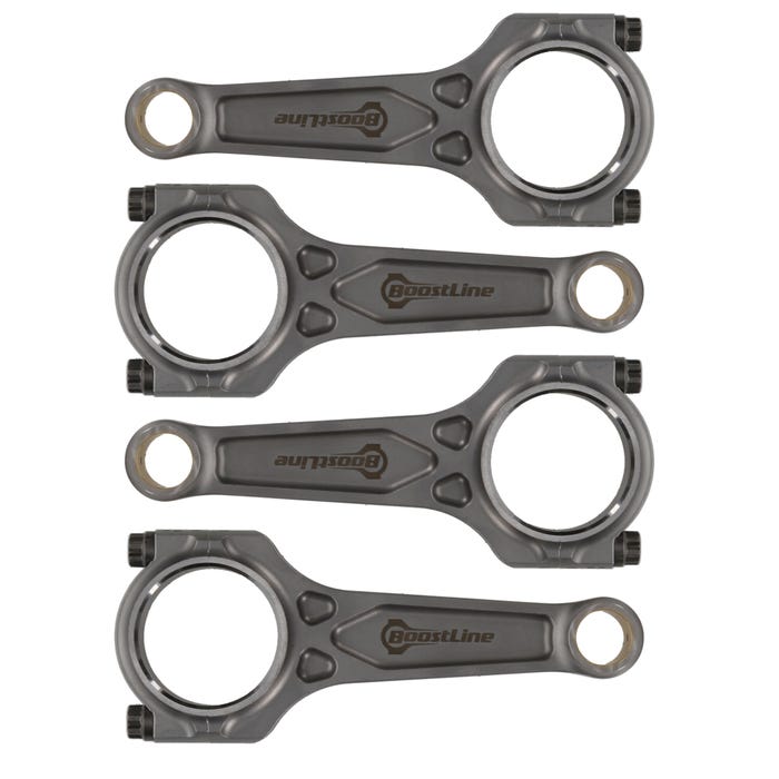 BoostLine connecting rods are designed and built for the stressful demands of high-powered, forced induction and nitrous engines. Whether you’re building a boosted K-series, a track-ready Volkswagen, or a sneaky SRT4, BoostLine connecting rods have been proven in import and domestic four-cylinder engines confidently pushing 1,000HP+. BoostLine rods are forged from premium 4340 steel and utilize a patented, three-pocket design, maximizing strength while minimizing rotating weight. This revolutionary design dramatically improves each rods’ big-end stability under tensile loads and provides a 60% improvement in bending strength and 20% stress reduction in tension compared to H-beam designs, benefits crucial to durability in four-digit-horsepower engines. Each rod is equipped standard with industry leading ARP hardware and is subject to a 26-point, CMM inspection with all critical dimensions provided via an inspection card included with every set of rods. BoostLine connecting rods are the complete package for every performance build, from powerful projects to all-out race cars.