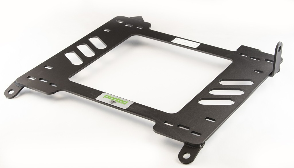 Planted Seat Brackets are laser cut from 3/16 inch thick steel and hand welded to ensure weld penetration for superior strength. Each bracket is pre-slotted with hole patterns to accept sliders from most major seat manufacturers like Braum, Bride*, Cipher Auto, Cobra**, Corbeau, Momo, NRG, OMP, Racetech, Recaro, Sabelt, Sparco, Status Racing, Takata and more. There is extra space on the bracket for drilling your own hole pattern if using a slider with a less common hole pattern, or direct mounting a seat or side mount when eliminating sliders is preferred. They are finished with a black powder coat and applications are available for many vehicles, however Planted is continually looking for more vehicles to create brackets for so if you don't see your vehicle listed in the application guide please contact us and we'll add your vehicle to the vehicles wanted list.